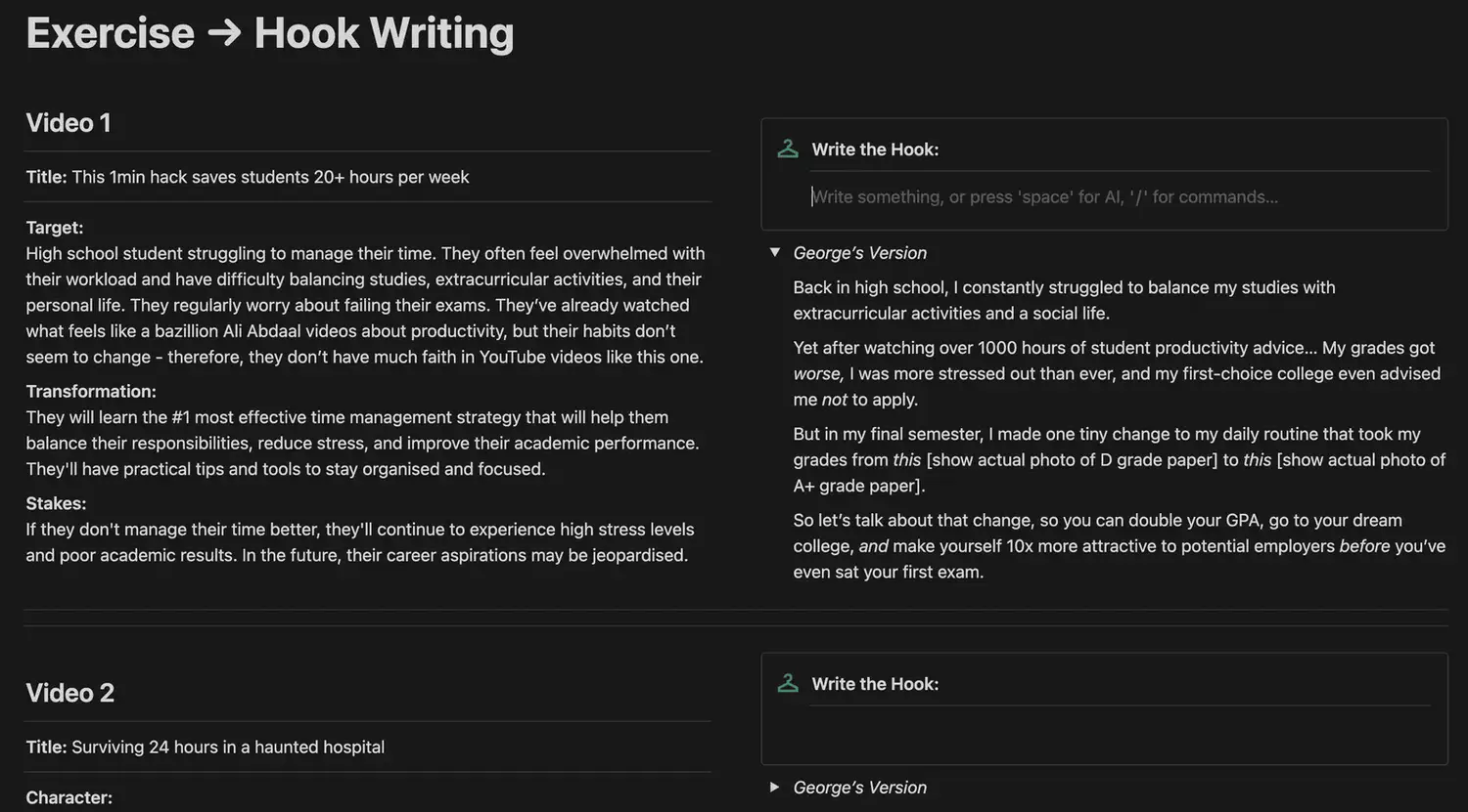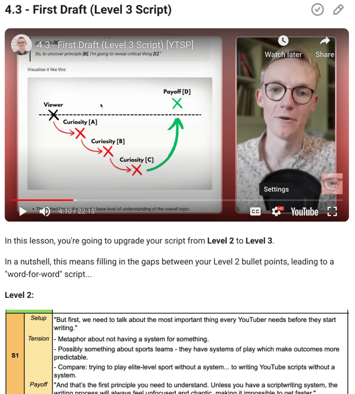 Khi bạn hoàn thành khóa học, bạn sẽ tìm thấy một loạt các bài học bổ sung giúp bạn cải thiện tất cả các kỹ năng mà tôi sử dụng như một nhà viết kịch bản cho những YouTuber có hàng triệu người đăng ký.