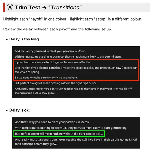 Vượt qua sự mệt mỏi vì quyết định và việc suy nghĩ quá nhiều trong quá trình viết kịch bản với một loạt các tài liệu tóm tắt dễ sử dụng và hữu ích. Được tạo ra đáp ứng nhu cầu lớn từ YTSP V1, các tài liệu này tổng hợp hàng loạt ví dụ thực tế mà bạn có thể dễ dàng áp dụng. Từ các đoạn mở đầu và khoảng trống tò mò đến việc phá vỡ phản đối và tích hợp nhà tài trợ, có hơn 100 ví dụ từ các video có hiệu suất cao.